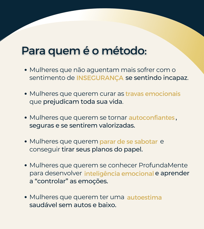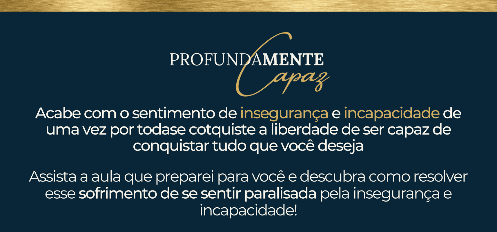Você vai aprender a ser uma mulher VERDADEIRAMENTE CAPAZ! Você não será mais refém dos sentimentos de incapacidade e insegurança que te impedem de crescer profissionalmente e amadurecer como mulher. Descobrirá a chave para ser capaz de aprender e colocar em prática qualquer conhecimento que deseja; o segredo do crescimento cerebral; como as mudanças do seu corpo afetam a mudança da sua mente e muito mais.